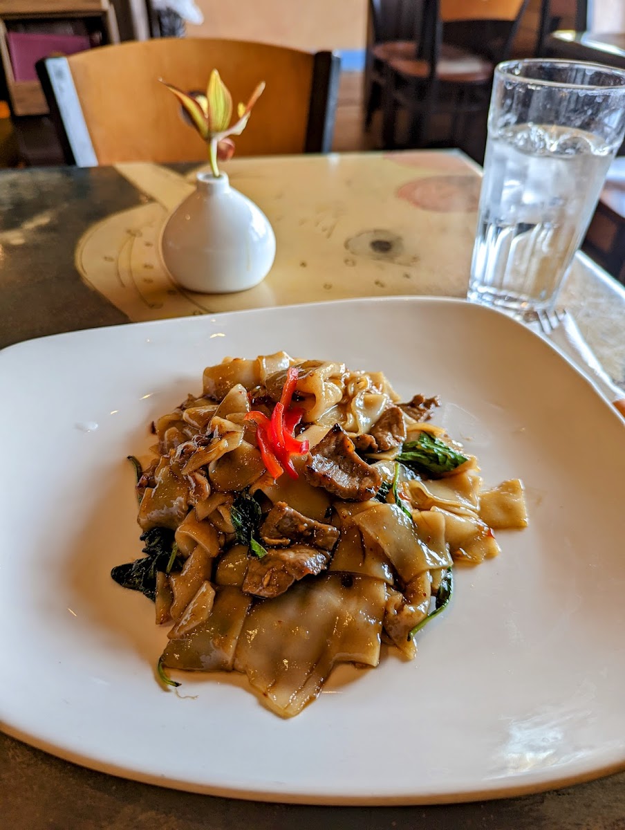 - Delicious Noodles: The Pad Thai is a must-try, expertly stir-fried with chicken or shrimp, bean sprouts, and a sprinkle of crushed peanuts — all for just $9.95. For a more adventurous palate, the See Ew Noodle, featuring your choice of protein glazed in a spicy hot chili sauce, will surely satisfy.
